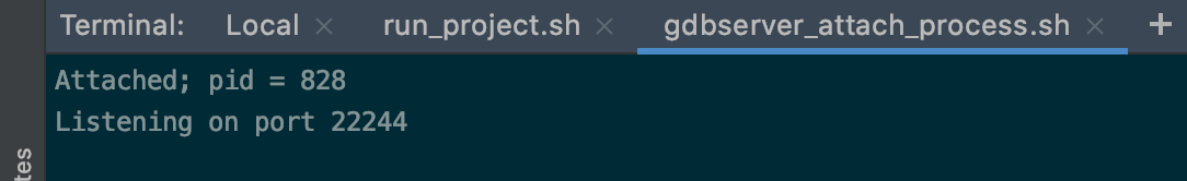 준비한 스크립트 중에서 직접 실행하는 파일은 ‘gdbserver_attach_process.sh’ 이고, 위에서와 같은 방식으로 실행할 수 있다. 다만, 스크립트를 실행하기 전에 프로세스가 실행 중이어야만 하므로 위에서 준비한 ‘run_project.sh’를 먼저 실행하면 아래와 같이 터미널이 열리면서 프로젝트가 실행되는 것을 볼 수 있다.