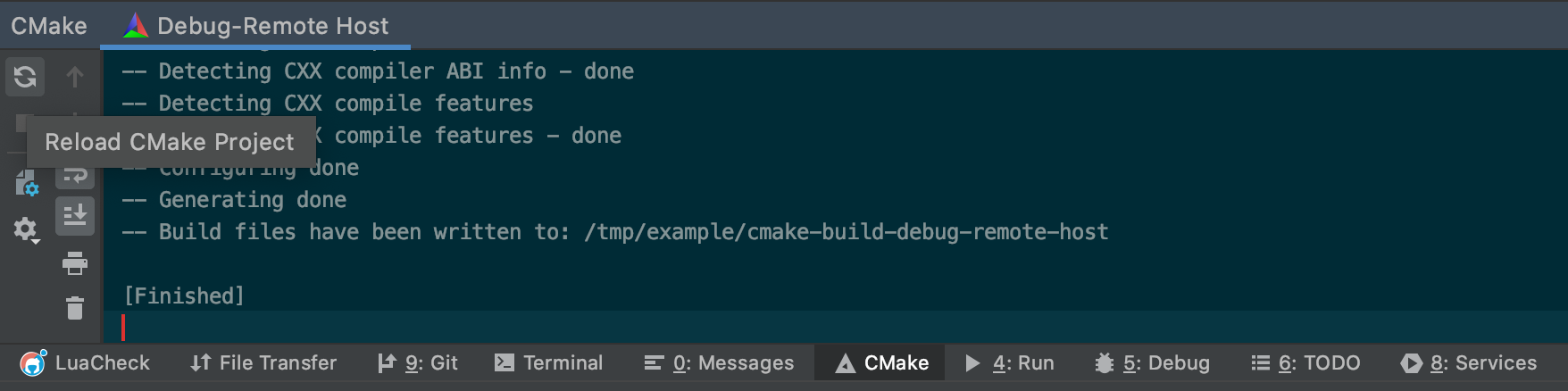 CMake 설정이 ‘Remote Host’로 되어있는지 확인한다.