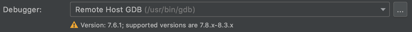 '# for remote debug' 아래 2줄을 새로 추가했다. yum에 centos-release-scl-rh repository를 추가한 이유는 이전 포스팅에서 cmake3를 설치하기 위해서 epel-release를 추가했던 이유와 같다. CentOS 7에 기본 설정된 yum의 repository에는 gdb 7.6.1이 이 글을 쓰는 현재 가장 높은 버전이고, CLion이 지원하는 최소 버전은 7.8.x 이상이다. repository 추가 없이 기본 gdb를 설치하면 다음과 같은 경고를 볼 수 있다.