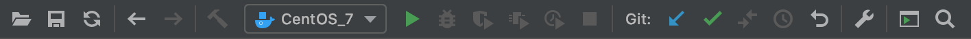 설정을 다 하고 ‘OK’를 클릭하면 위와 같이 지금 설정한 ‘CentOS_7’로 ‘Run/Debug Configurations’이 자동으로 선택되어 있을 것이다. ‘Run’을 눌러서 실행하면 Docker image를 빌드하고 container 실행까지 시켜준다. 이미 저번보다 시간이 짧게 걸릴 것이다.