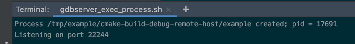 Run ‘gdbserver_exec_process.sh’을 선택하면, 아래와 같이 터미널에 스크립트가 실행되어 연결을 기다리는 것을 볼 수 있다.