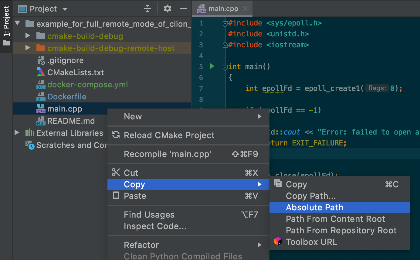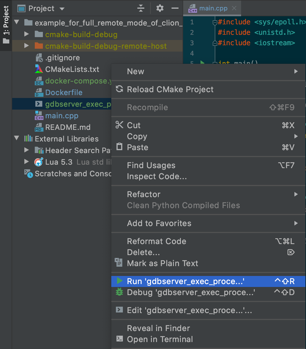 이제 리모트 디버그를 위해서 도커에 GDB, GDB Server를 설치하고 CLion에도 Debugger 설정을 할 것이다. 이전 포스팅에서 사용한 프로젝트에 이어서 진행하겠다.