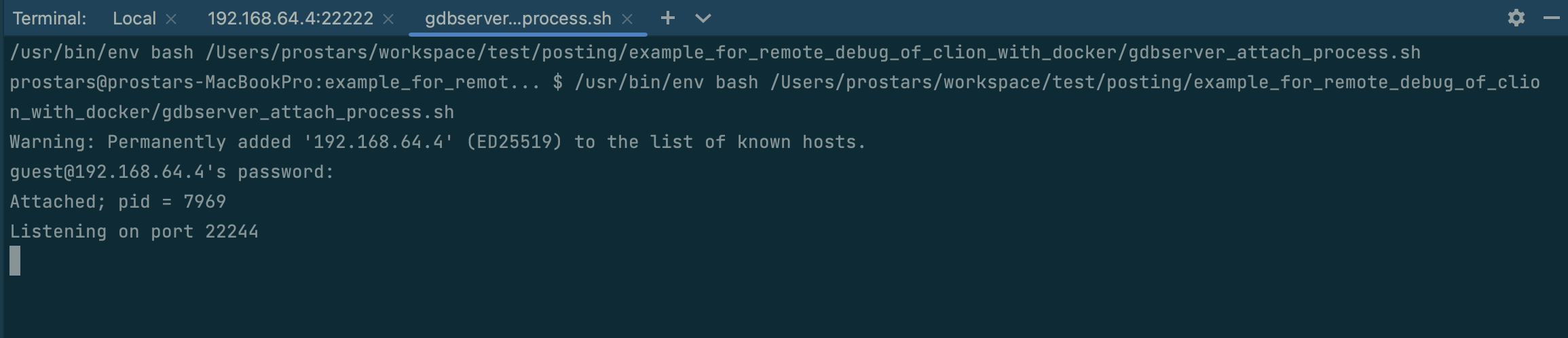 $ scp -P 22222 dev@192.168.64.4:/tmp/example/cmake-build-debug-remote-host/example_for_remote_debug_of_clion_with_docker ./cmake-build-debug-remote-host/